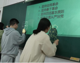 为了使同学们更好的铭记伟人,牢记使命,周雨晨同学组织同学们上台画出自己心中的伟人。最后,由同学们投票排出作品的名次。
