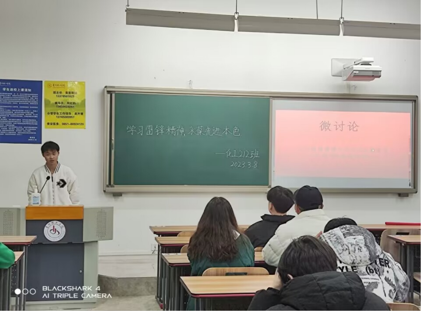 为深入学习雷锋精神,永葆先进本色,化工212班团支部于2023年3月8日在贵安校区G2203教室开展了以“学习雷锋精神,永葆先进本色”为主题的团组织活动。