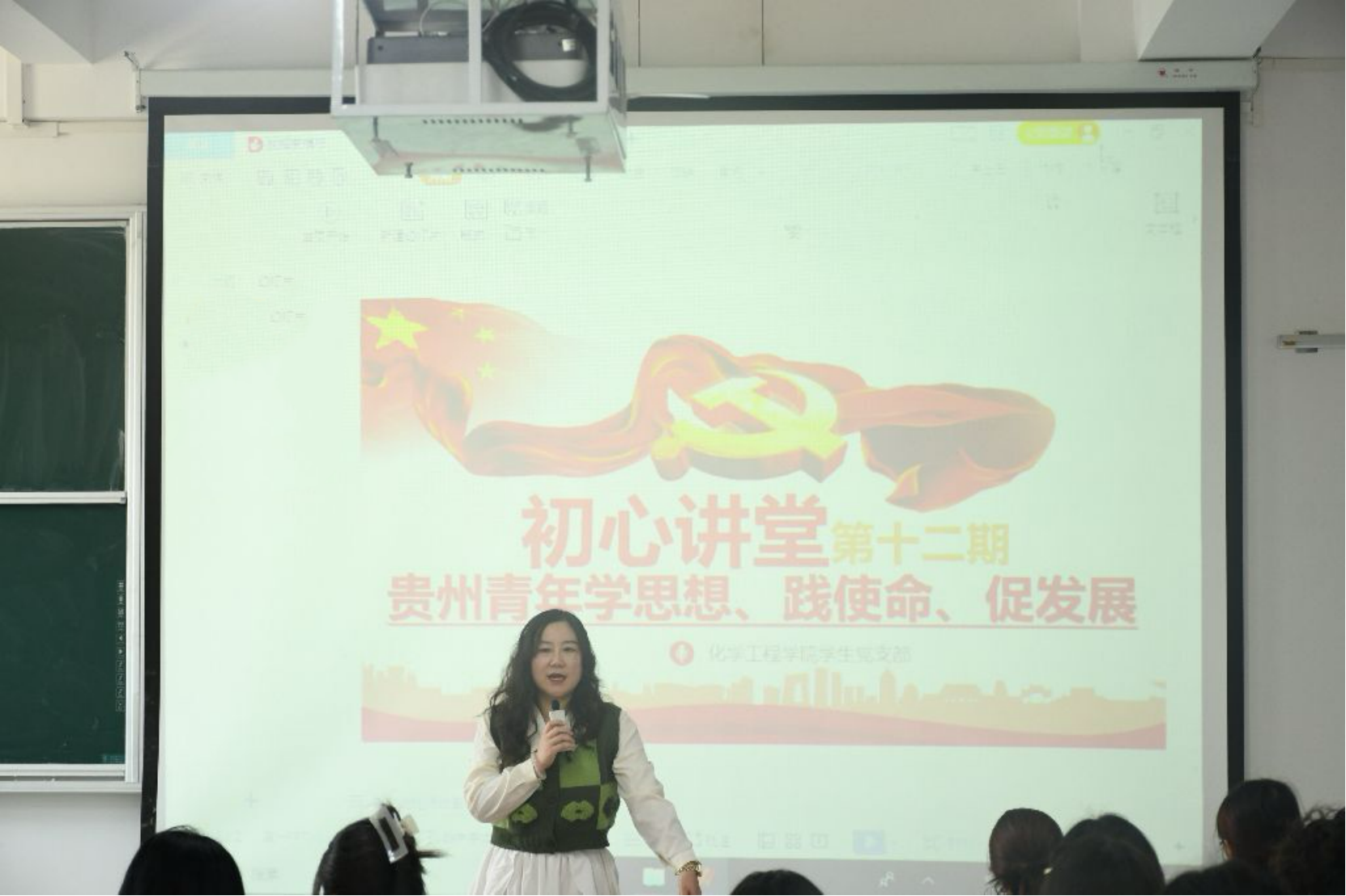 为深入学习习近平新时代中国特色社会主义思想,贯彻落实中共贵州省委十三届六次全会精神,在贵州的现代化建设中勇挑重担、积极奉献,成为有理想、敢担当、能吃苦、肯奋斗的新时代好青年。化学工程学院于4月11下午日在酝知楼 241教室举办“学思想、践使命、促发展”主题讲座——初心讲堂,本次活动由化学工程学院学生党支部书记左茜瑜老师主持,以学生党员为主讲人,通过“理论宣讲+实践分享”的模式,展现化学工程学院学生党员的思考与行动力。全院学生党员及入党积极分子共百余人参与。