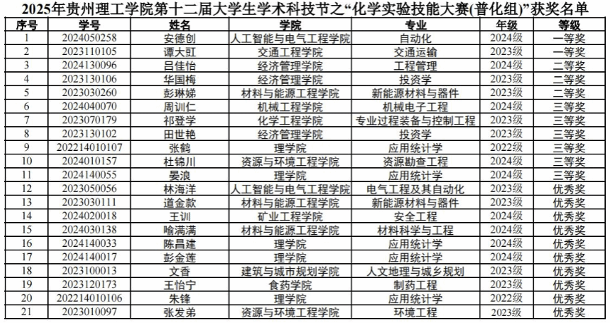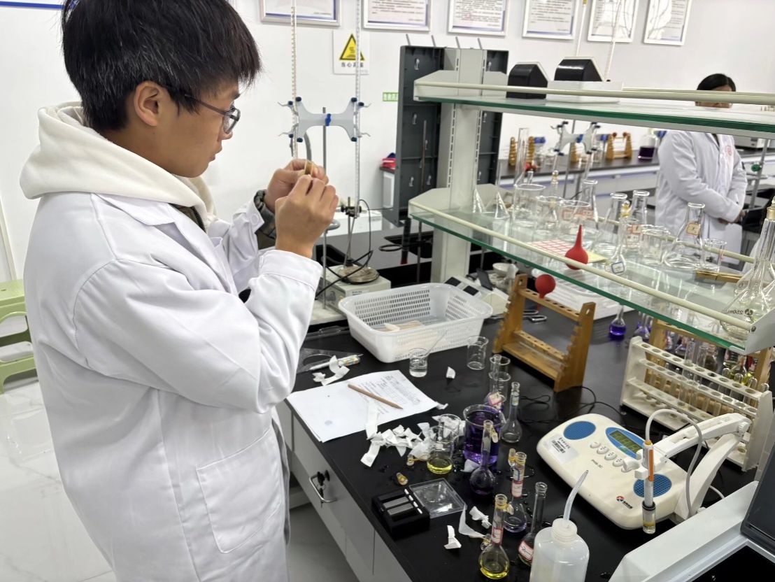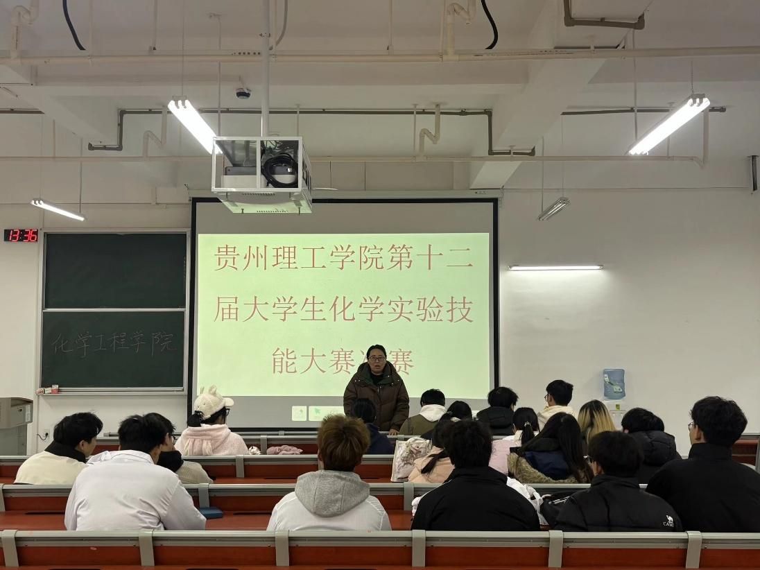 2025年12月6日,贵州理工学院第十二届化学技能大赛总决赛在酝知楼344、345实验室顺利进行。本次化学实验技能大赛由贵州理工学院团委、创新创业中心和化学工程学院主办,化学工程学院团总支学生会、贵州理工学院学生化工设计社团、贵州理工学院化工动力与控制协会共同承办。本次比赛以“理论+实操”的方式,吸引了来自全校化学爱好者的报名参与。