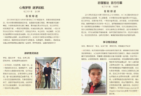 在暑假收集13级60位毕业生校友,编写《雏鹰展翅》。展示13级校友求学、工作经历和感悟。新生入学后每人发放一本,班主任通过组织班会,学习讨论,引导新生制定好自己的职业生涯规划,立志学好化工,投身于化工事业。