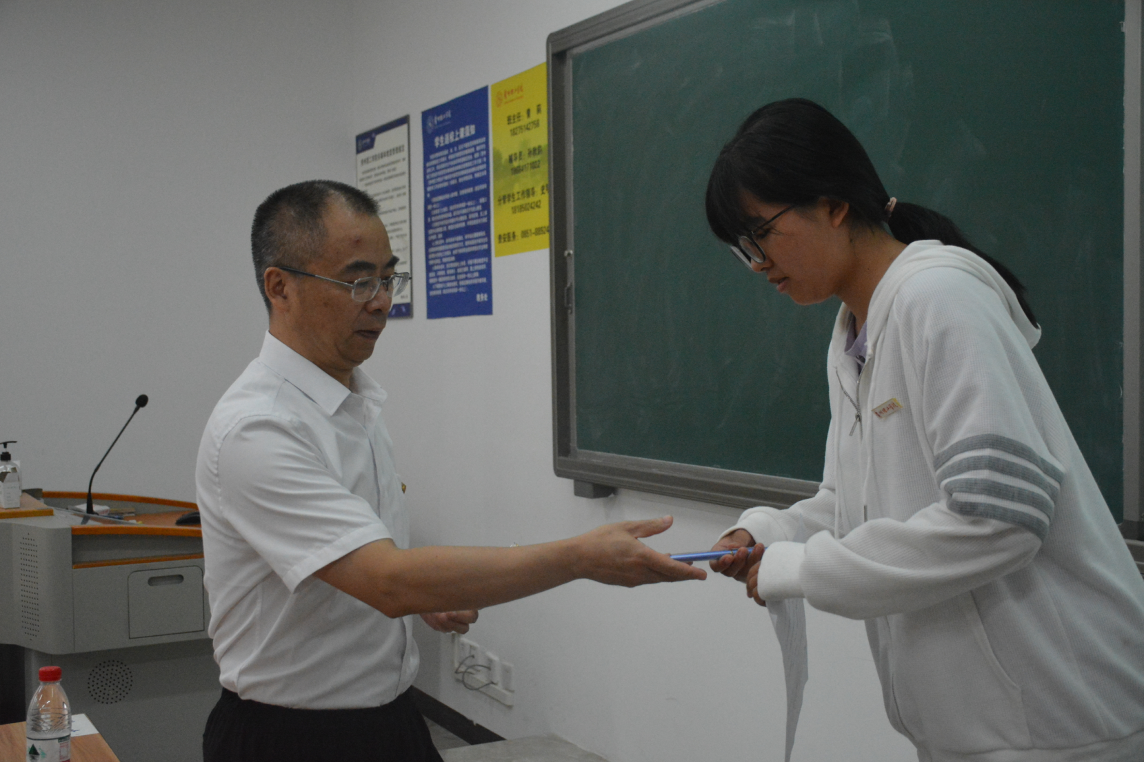 第二项,学院各位领导、老师为学生授笔赠送桌牌校牌;第三项,全体师生合影留念。