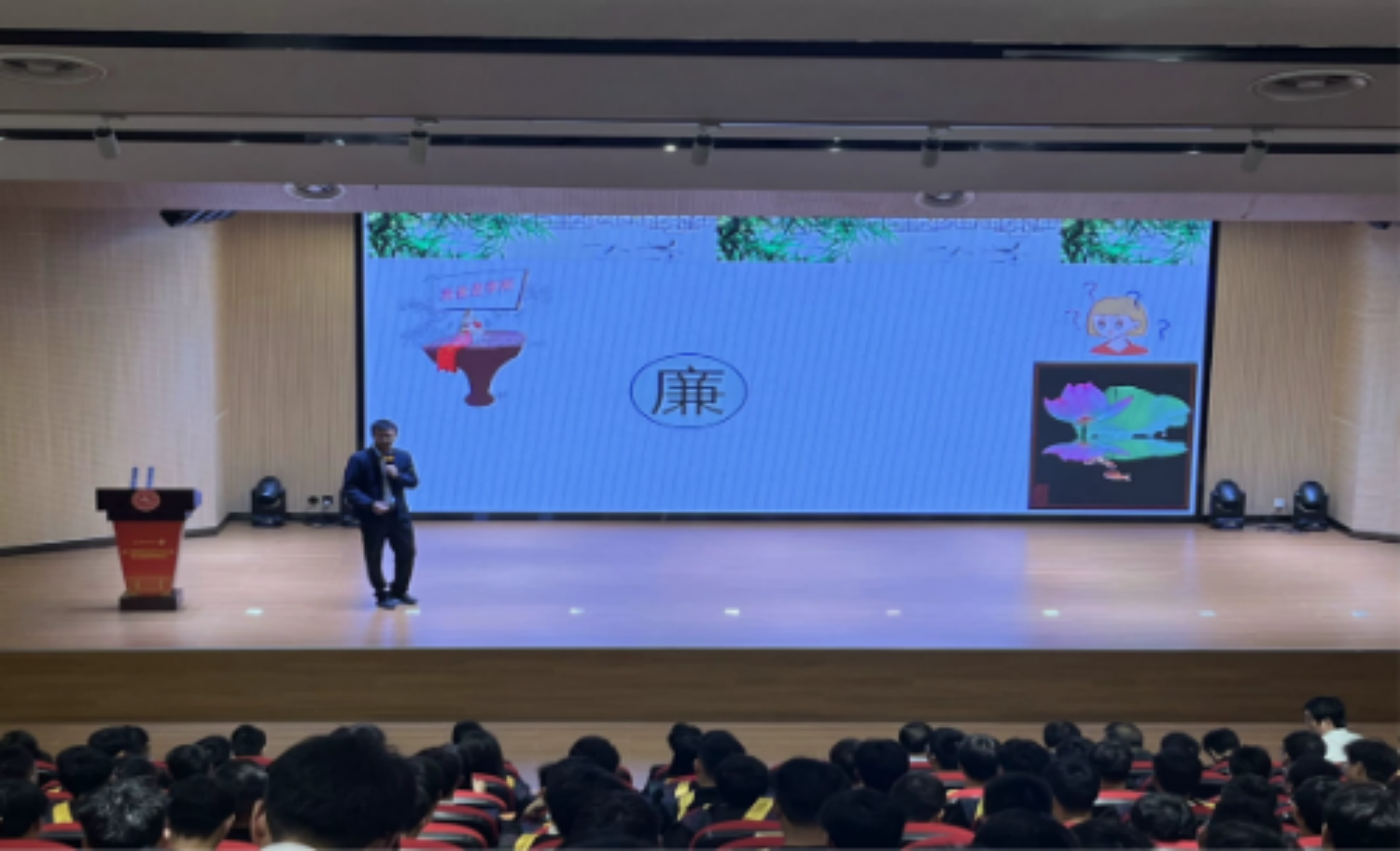 讲座中,黄宏升指出,廉洁自律是每一个公民应当坚守的底线,是维护社会公平正义、促进社会和谐稳定的重要基石。他说,廉洁是中华民族的一种传统美德,也是我们健康向上的生活方式,同学们踏入社会后,要廉洁于心,坚定理想信念,严守纪律规矩,以实际行动践行党的宗旨,对待工作与生活要不为名所累,不为利所缚,不为权所动,不为欲所惑,踏实勤勉,走好人生的每一步!