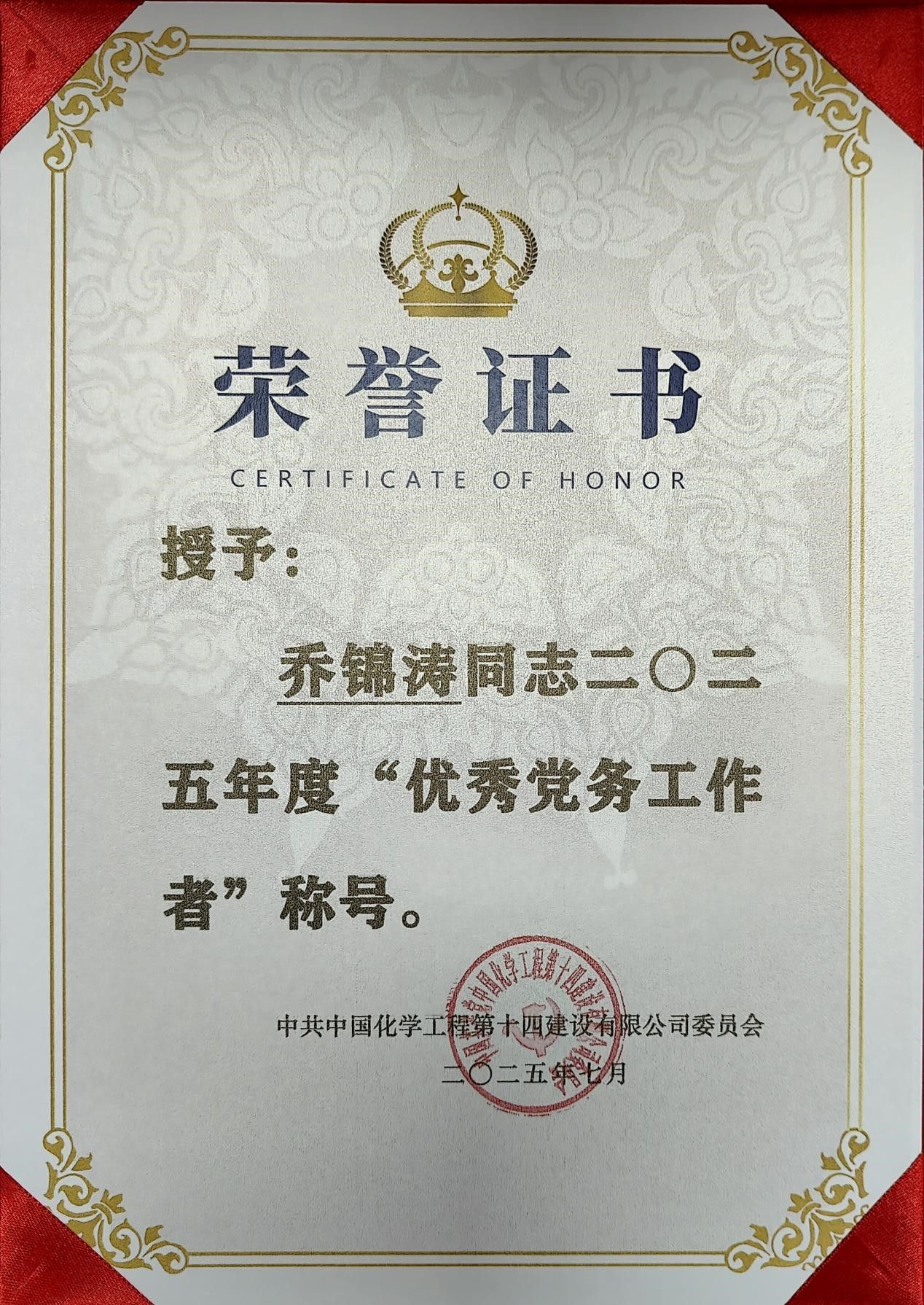 姓名:乔锦涛,性别:男,政治面貌:中共党员,入学年份:2018年9月,专业:化学工程与工艺,毕业年份:2022年6月,现在工作单位:中国化学工程第十四建设有限公司印尼分公司,岗位:党建专员兼团支部书记、印尼贝特瑞项目质量经理。