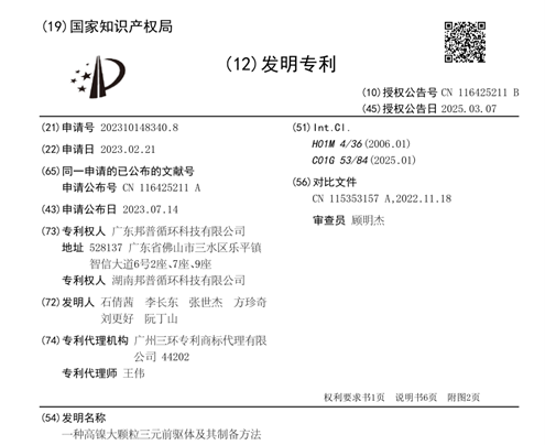 (2)毕业生后学习工作经历:毕业后,张世杰入职中伟新材料公司,担任前驱体研发技术员,荣获公司 2020 年 “优秀新人” 称号,为深耕新能源行业奠定坚实基础,积累了丰富的研发经验。之后在宁波富理材料公司担任研发工程师,在新能源材料研发领域持续深耕,为固态电池研发奋斗,为实现新能源汽车电池行业跨越发展做贡献。期间,他共发表发明专利四项,均获得国内及东盟多国授权,其中数个研发成果成功应用于新能源汽车产业并实现量产,为新能源产业发展贡献力量。同时,他践行“理工精神,薪火相传”理念,先后培养多名本科毕业生、研究生成长为研发工程师,传递专业知识与职业经验。