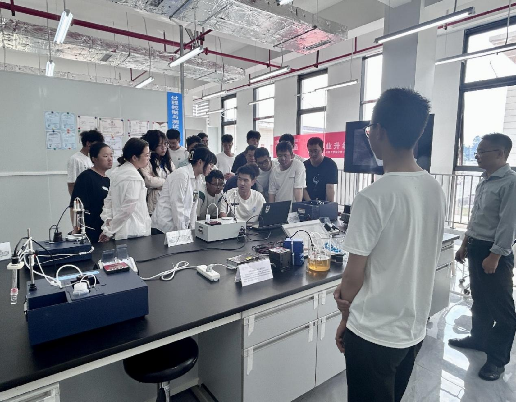 活动中,由化学工程学院过程控制与测试技术实验室自主研制的氯化物检测仪、三氧化硫检测仪、脂肪酸检测仪、氨基酸态氮检测仪、染料自动配比控制系统及平流泵控制装置纷纷亮相,6位仪器开发项目负责同学围绕项目创新点、核心技术、开发过程遇到的难点等进行了经验分享,现场同学对开发的仪器装置很感兴趣,与项目负责人们进行了深入交流,并纷纷表示,希望能够进入实验室学习真本领武装自己,学有所成,将来能够更好地服务社会。