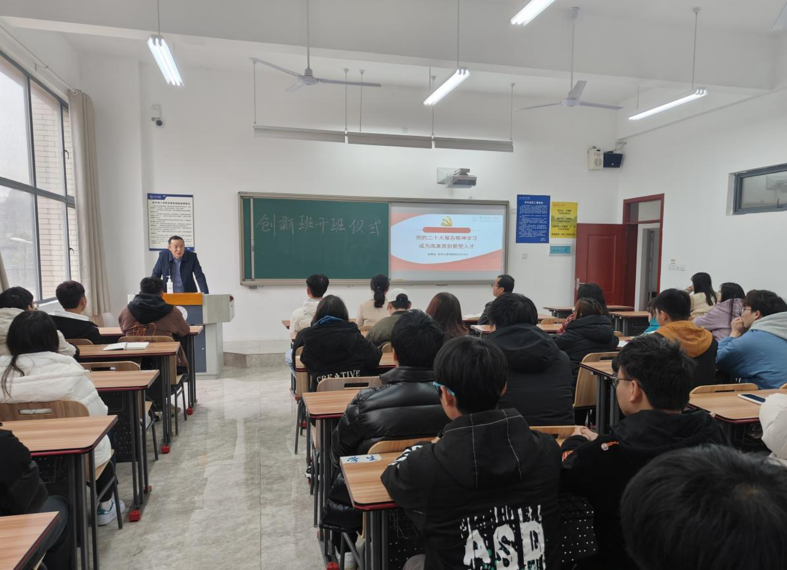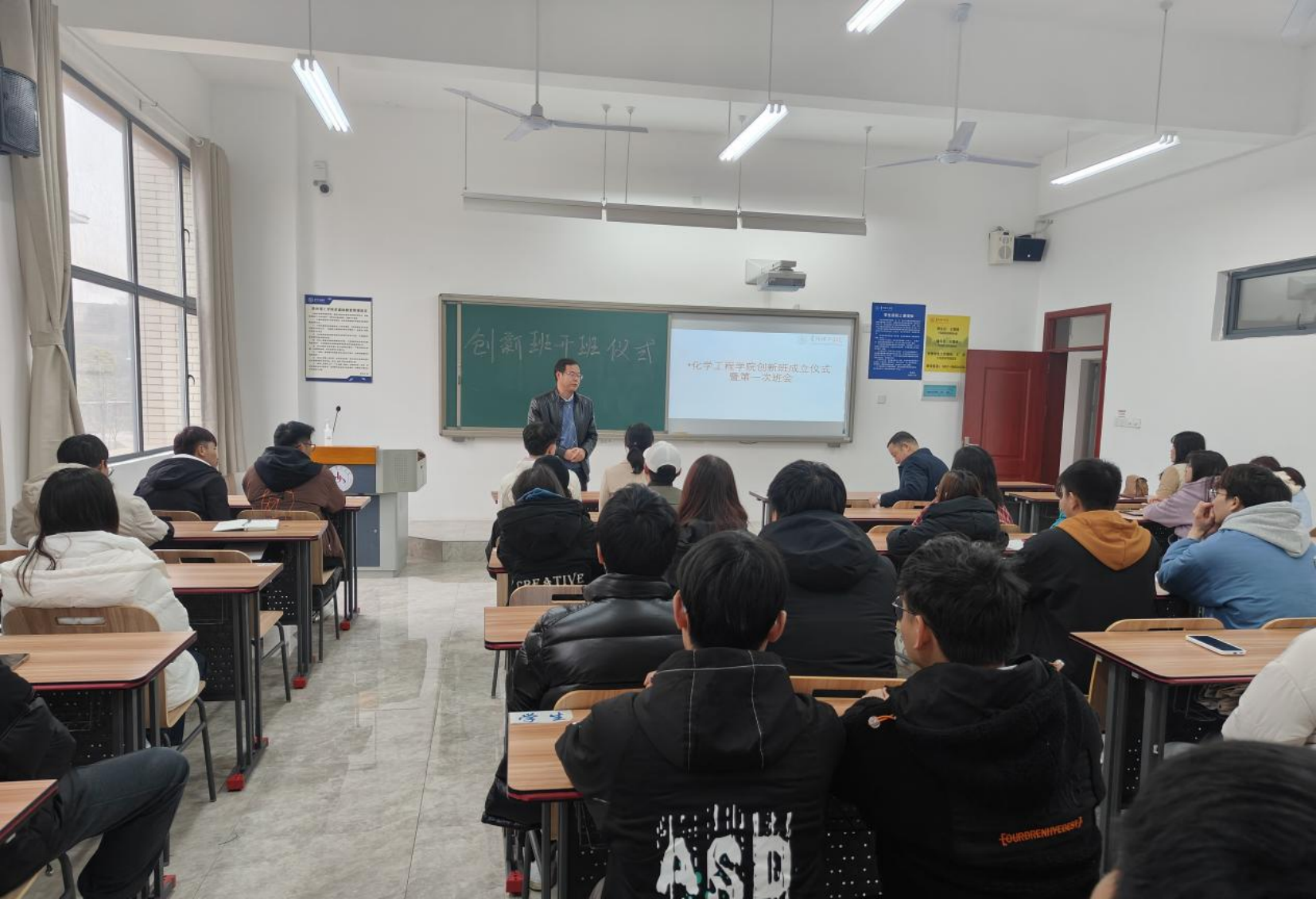 良好的学风是一个班级的灵魂,为提高同学们的学习积极性,建设优良学风,化学工程学院创新班成立仪式暨第一次班会于2023年3月1日下午在贵安校区一教215顺利开展,化学工程学院党总支书记宋明江,党总支副书记蔡诚,学生科副科长刘新铭等参加本次创新班成立仪式。
