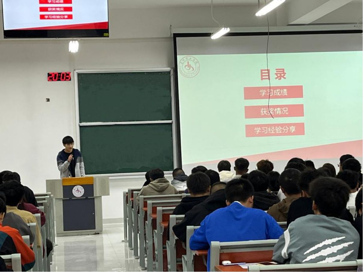 本网讯(化学工程学院作者:)为树立先进模范,强化榜样力量,进一步加强学风建设,引领低年级同学做好学业规划,2023年10月30日晚,化学工程学院在酝知楼126教室举行了2023年国家奖学金获得者经验分享交流会。