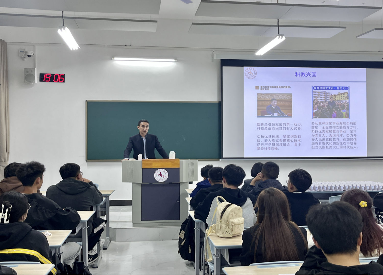 仪式进行第一项:学院寄语,在讲话中,黄宏升要求同学们,要努力培养自己的创新能力、自学能力,养成独立思考的好习惯,珍惜大学四年的时光;蔡诚强调了科教兴国、教育决定未来的重要性,希望大家能够履行承诺,坚定志向,做脚踏实地的人;仇伟指出新时代强国战略,创新是引领发展的第一动力,是建设现代化经济体系的战略支撑,作为青年,更应该注重创新创业能力的培养。
