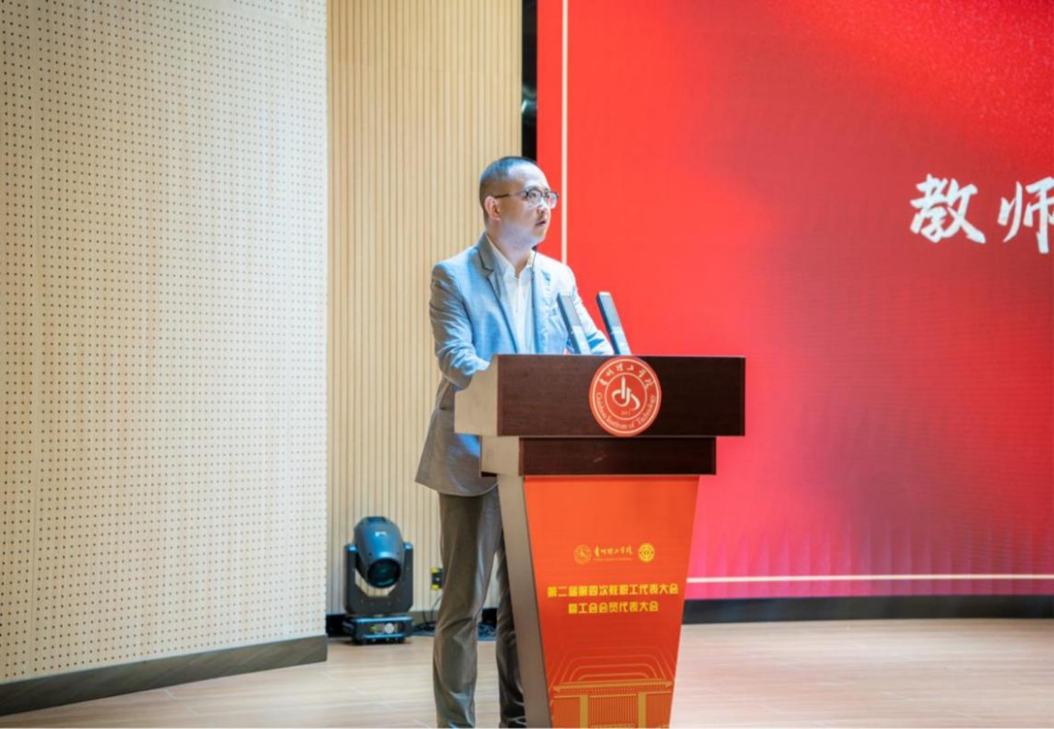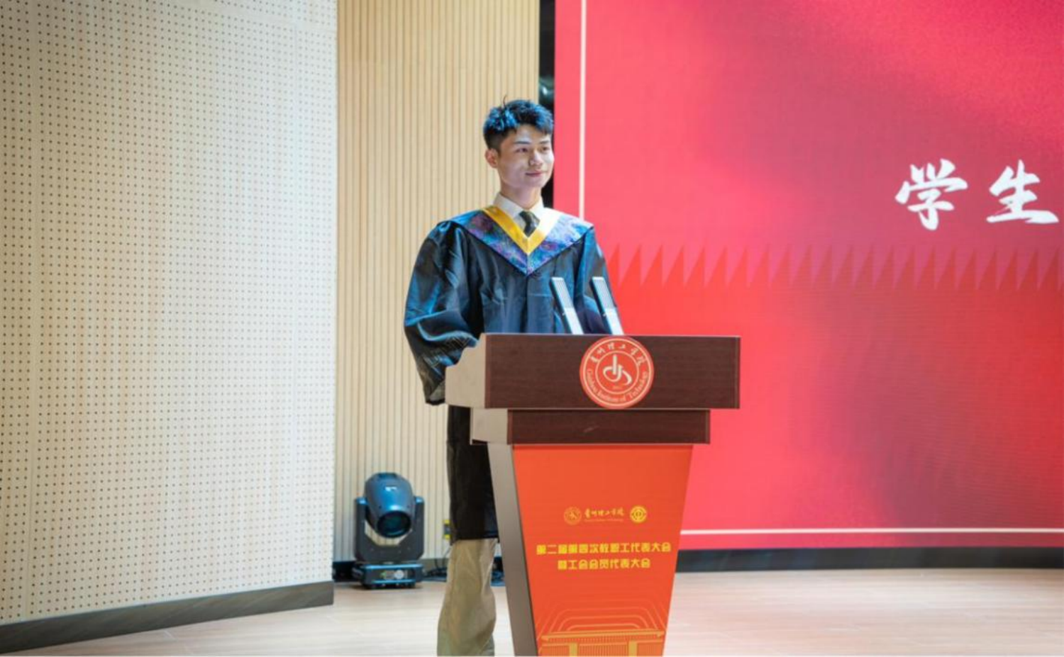 化工原理教研室主任罗孜作为教师代表发言,他介绍,贵州理工学院自成立以来,一直秉承“知行至善,厚积薄发”的校训,致力于培养德才兼备的社会栋梁之才,学校拥有一支高素质的教师队伍,他们不仅在学术上给予学生指导,更在生活中给予关怀,为学生的全面发展提供了坚实的基础。他鼓励毕业生们继续保持好奇心和探索精神,勇敢面对未来的挑战,并将贵州理工学院的精神传承下去。