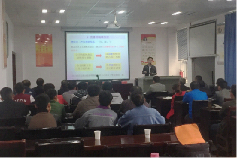 学院围绕贵州省“新型工业化”战略和“六大工业产业基地”建设,依托现有的省级人才团队和教育厅科研平台,坚持“基础研究”和“应用研究”并举,积极开展科研与社会服务工作,先后与磷化工、重晶石、玄武岩等生产企业联合开展技术攻关,积极帮助企业解决技术难题。针对贵州川恒化工股份有限公司职工技术理论提升需求开设了“川恒培训班”(图1-2)。主要开展化工工艺、化工设备方面的培训,拓宽员工专业知识,提高专业水平。