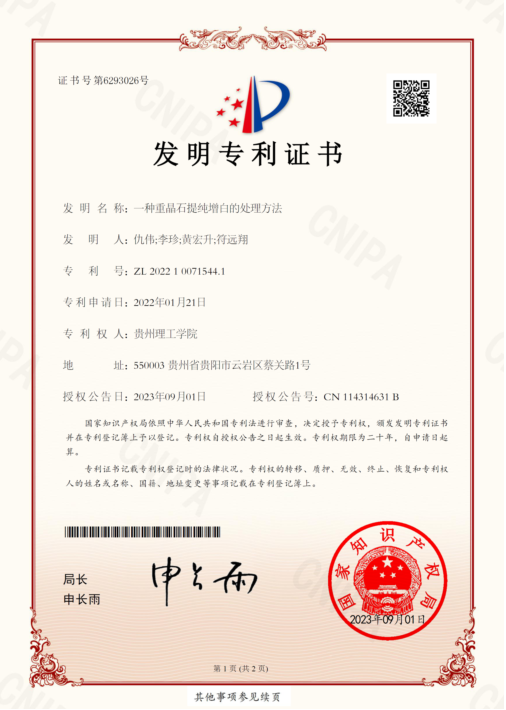 围绕天柱丰富的低品位重晶石矿物资源利用价值低廉问题,学院教师联合晶盛实业有限公司,开发了黑灰色低品位重晶石变白处理工艺,一次性处理可使白度从60%增高到95%,并实现废酸循环利用和余热充分利用,大大降低生产成本(如图7);并对变白重晶石进行改性,获得了超疏水的超细(粒径100-200nm)重晶石(图8),实现了资源的进一步精深加工,项目成果目前正在推广应用中。