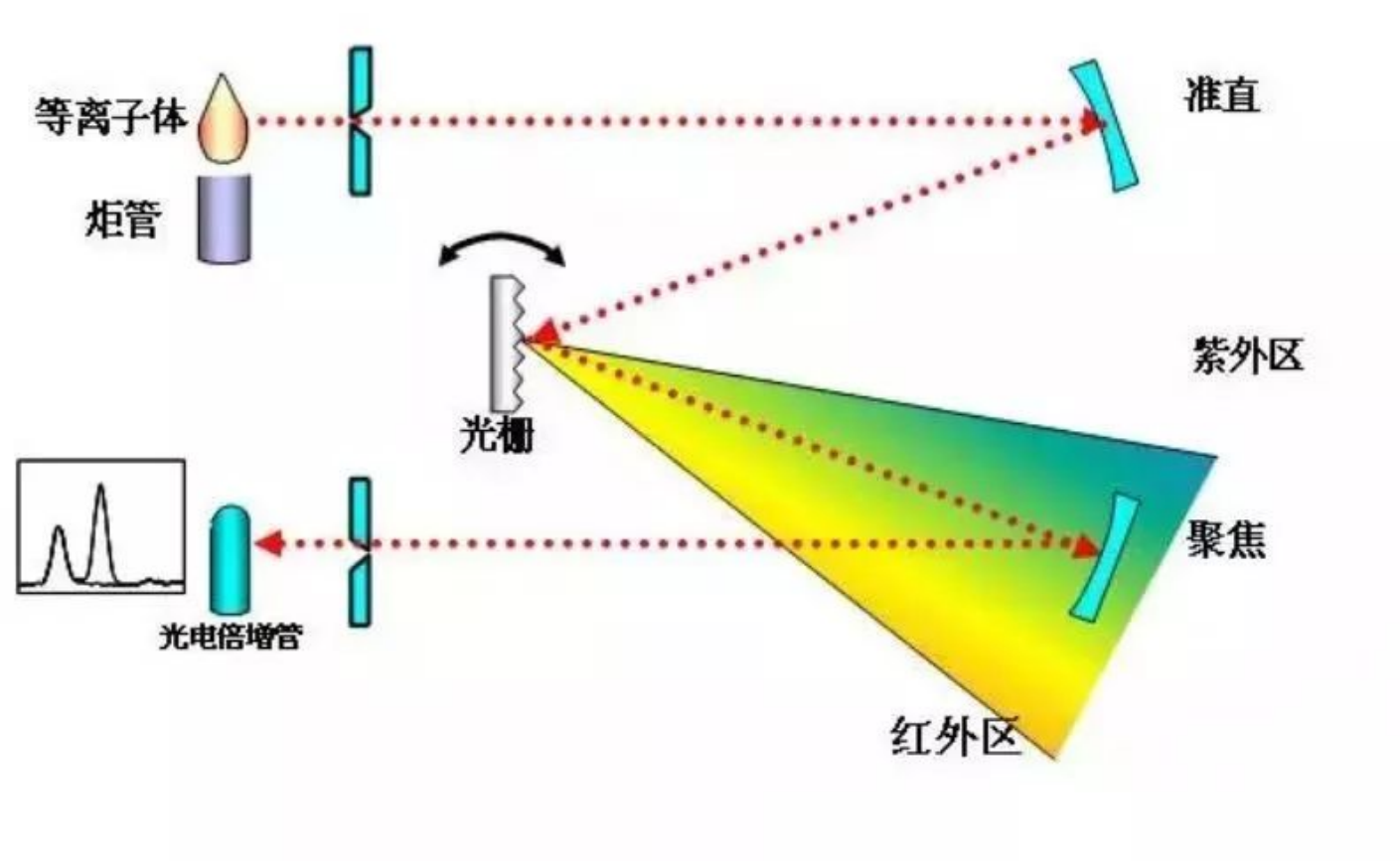 ICP-OES:电感耦合等离子体发射光谱仪。利用等离子体激发光源使试样蒸发汽化,离解或分解为原子状态,原子可进一步电离成离子状态,原子及离子在光源中激发发光。利用分光系统将光源发射的光分解为按波长排列的光谱,之后利用光电器件检测光谱。根据测定得到的光谱波长对试样进行定性分析,按发射光强度进行定量分析。可以分析元素周期表中70多种元素。在样品元素分析中运用得非常广泛,涉及的领域包括纳米,催化,能源,化工,生物,地质、环保、医药、食品、冶金、农业等。