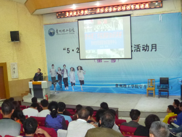 本网讯(后勤处 李雪)为消除火灾隐患,构建和谐校园,提升师生的消防意识与技能,5月21日,校保卫处特邀请贵州省安民消防宣传中心李教员于我校逸夫中心报告厅开展“消防安全知识培训专题讲座”,后勤处膳管会全体成员及宿管人员参加了此次讲座。
