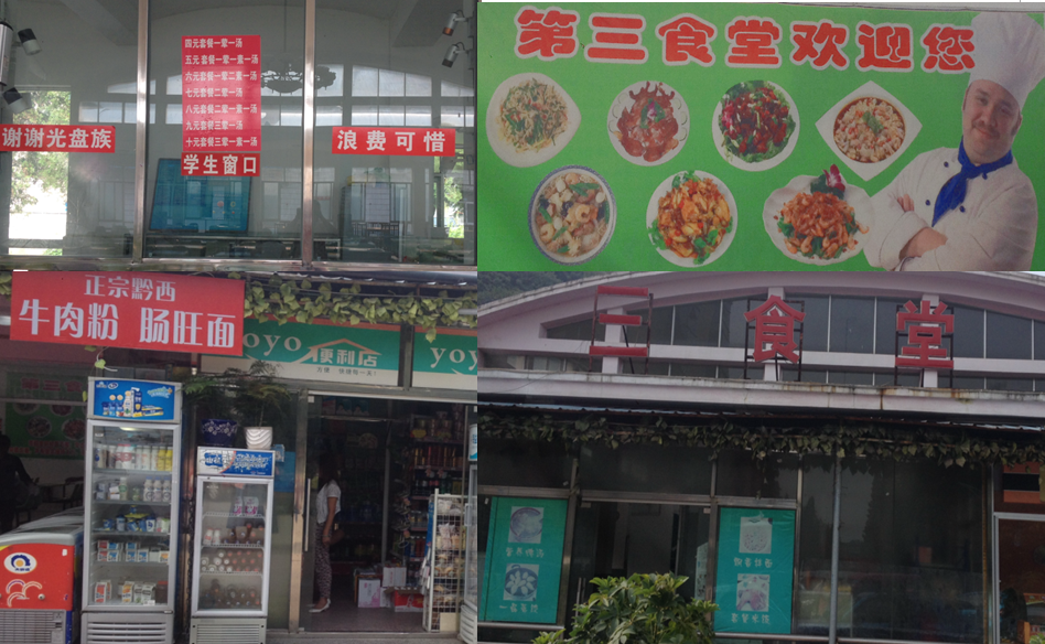 我校一食堂、二食堂位于下寨,距离学生公寓较近,方便我校学生用餐,是学生就餐流动量较大的用餐点。三食堂位于上寨荷花池旁,距离成人教育学院较近,环境优美,内设有职工用餐点,方便位于上寨办公、学习的师生用餐。