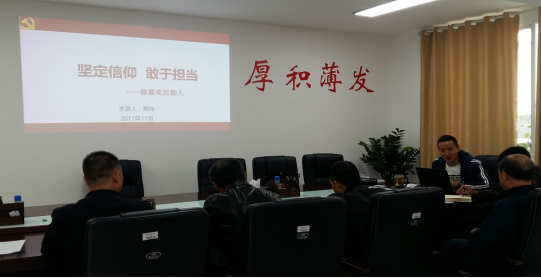 11月14日下午,处党总支委员、处长郑伟同志为全处党员作了专题党课辅导。首先,处长结合当前深入开展的十九大精神学习进行了关于信仰的分享,进一步强调作为共产党人要强化和坚定信仰,做到心中有方向,做事有标准,做人要讲原则,言行举止发自内心,共产党人的信仰就是必须按党章、党的精神为指导。