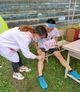为全力做好校运会医疗卫生保障工作,配备了必需的急救药品及器械,为运动员、裁判员提供及时、有效的现场救护和医疗保障服务。在运动场上,身着白衣的她们随时关注着赛场上运动员的身体状态,询问病情,监测生命体征,为受伤者清创、消毒,为肌肉痉挛者按摩放松,为晕厥学生放松心情,为出现各种不适的患者检查身体,在运动会期间天气炎热,易发生中暑等身体不适情况,校医们提醒运动员注意人身安全的同时,在场观众也要预防因高温带来身体不适的状况。用精湛的医术缓解运动员的伤痛,以热情的服务温暖运动员的心,卫生所医务人员发挥自己专业特长,也保障了比赛的顺利进行。