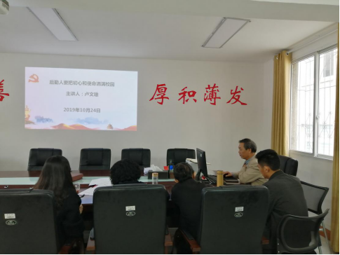 后勤管理处党总支保密委员兼工青委员卢文雄同志以“后勤人要把初心和使命洒满校园”为专题党课主题,紧紧围绕深入开展理论学习、检视反思问题、调查研究的基础上,结合后勤管理处两个校区总体工作及各科室的工作全面展开查找、检视、分析,提出整改落实建议和工作努力发展方向讲了一堂专题党课。
