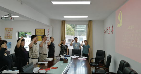 (本网讯后勤管理处易欣)为庆祝中国共产党建党99周年,大力弘扬党的光辉历程和丰功伟绩,增强党组织的创造力、凝聚力和战斗力,充分发挥党组织战斗堡垒作用,激发广大党员发挥先锋模范作用,7月1日,后勤管理处党总支开展“重温入党誓词、过政治生日”主题党日活动。后勤管理处分管校领导副院长胡兴灿到会指导,后勤管理处党总支全体党员参加活动。