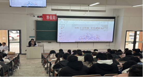为做好我院2024年艾滋病防治健康教育工作,根据省防治艾滋病工作委员会办公室《关于做好2024年“世界艾滋病日”主题活动的通知》(黔艾办函〔2024〕2号),切实落实学校预防艾滋病措施,在大学生中普及艾滋病防控知识,推动“青春红丝带”防艾宣传教育活动深入开展,在校内营造艾滋病宣传教育工作的良好氛围。我校后勤处卫生所联合花孟社区卫生服务中心于11月28日在开物楼1109大阶梯教室开展艾滋病健康教育宣传讲座。