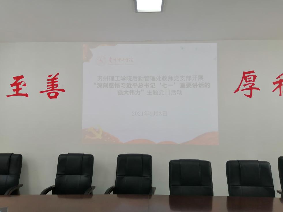 本网讯(后勤管理处 易欣/文 )2021年9月3日下午14:30分,后勤管理处教师党支部在后勤楼301会议室开展了深刻感悟习近平总书记‘七一’重要讲话的强大伟力”主题党日活动,活动采取线上线下方式进行。