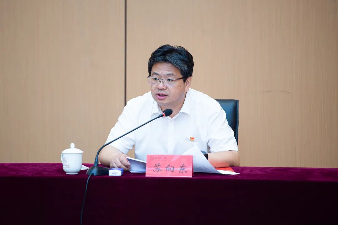 苏向东在总结讲话中指出,自主题教育开展以来,校党委深入学习贯彻习近平总书记关于主题教育系列重要讲话和重要指示批示精神,按照中央、省委部署,在省委第十八巡回指导组的有力指导下,牢牢把握“学思想、强党性、重实践、建新功”的总要求,坚持以“学研检立贯通融合、推动学校高质量发展”为主线,做到“五个突出”,突出强化组织领导,推动主题教育走深走实,衷心拥护“两个确立”、忠诚践行“两个维护”。突出抓好理论学习,推动了党的创新理论入脑入心、见行见效。突出抓好调查研究,树牢了以人民为中心的发展思想。突出抓好实干实践,推动了学校高质量发展取得新成效。突出抓好检视整改,淬炼党员干部党性作风,推动了建章立制和成果巩固。通过主题教育,广大党员干部纪律意识、规矩意识得到了进一步增强,更加自觉地做良好政治生态和社会风气的引领者、引导者、维护者。