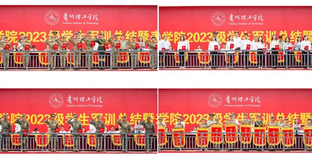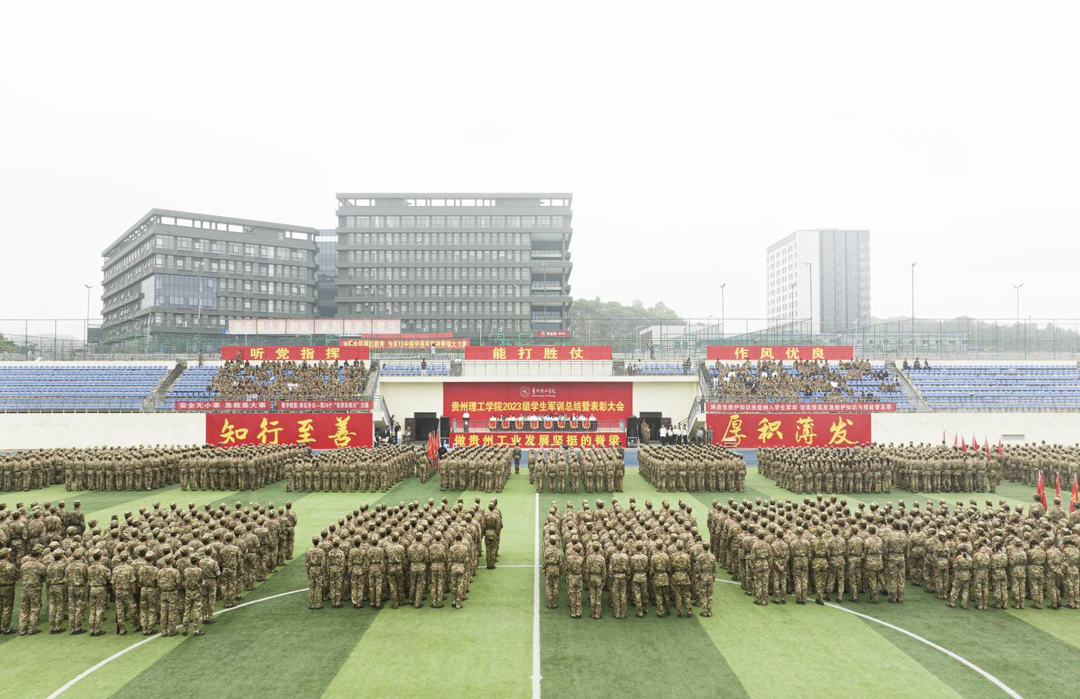 本网讯(党委宣传部)9月22日上午,贵州理工学院2023级学生军训总结暨表彰大会在体育场举行。校领导苏向东、潘良明、高勇、胡兴灿、贺梦依、林长松、张开智,校党委委员左柏州,武警贵阳支队政治教导员苏超,军训教官,军训团全体成员,2023级全体参训新生参加表彰大会。