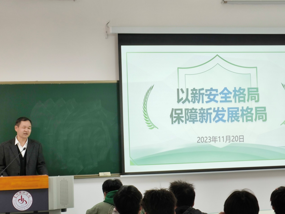 11月30日,副校长胡兴灿“以新安全格局保障新发展格局”为主题给自动化223班讲授“形势与政策”课。国是千万家,有国才有家。国家安全是安邦定国的重要基石,强调坚持总体国家安全观,为全面推进中华民族伟大复兴作出新贡献。引导同学认识国家粮食安全的重要意义,号召青年学子节约粮食,避免舌尖上的浪费。