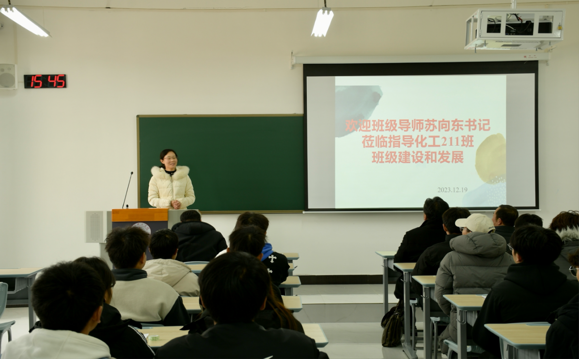 本网讯(化学工程学院 梁梦奇/图 李跃成 付会单/文)为帮助同学们坚定理想信念,明确自身发展方向,做好职业发展规划,2023年12月19日,化工211班在B01-409教室召开了“坚定理想信念,成为高技能创新型人才”的主题班会。校党委书记、班级导师苏向东,化学工程学院有关师生参加了本次主题班会活动。