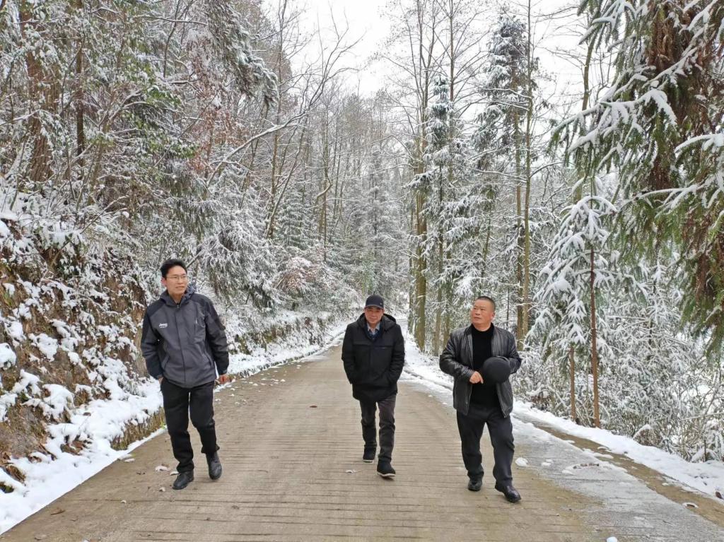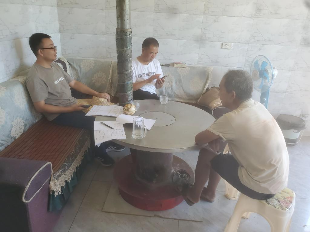 龙军(左一)走访特殊困难群体 沿途查看路灯安装位置并与群众协商路灯安装事宜