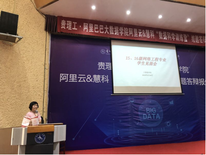 梁杰代表学校向2015、2016级网络工程专业的同学对此次划转调整工作给予的理解支持以及配合表示感谢,同时希望同学们进入到大数据学院后,好好学习相关专业知识,夯实基础,将来更好地服务贵州社会经济发展,服务全国“互联网+”大数据产业发展,做社会主义现代化的接班人,为实现中华民族伟大复兴“中国梦”而努力奋斗。