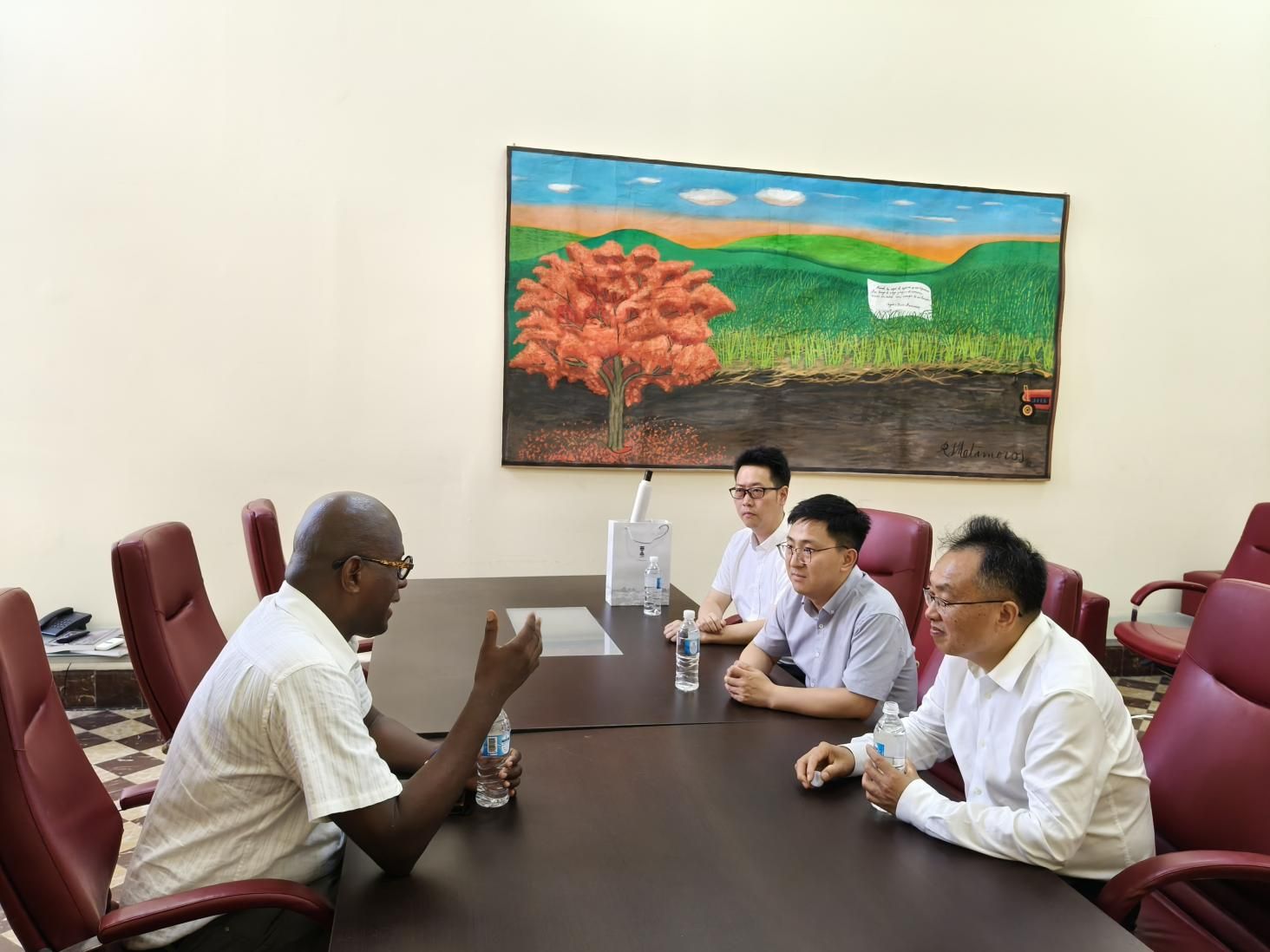 7月25日,潘良明一行访问了哈瓦那大学,与第一副校长迪奥尼西奥·扎尔迪瓦尔·席尔瓦座谈。迪奥尼西奥对我校代表团到访表示欢迎,介绍了哈瓦那大学的建校历史、办学优势与特色。潘良明介绍了我校基本情况,表达了拓展与哈瓦那大学的合作,特别是在开展硕士联合培养的意愿。