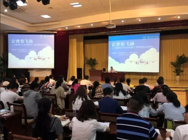 本网讯 2018年6月22日上午,贵州理工学院党委书记曾羽教授走进省团校“青春闪光”青年培训工程——贵州省高校共青团干部理想信念培训班为各高校共青团干部作题为《让青春飞扬》的报告。团省委书记涂妍、副书记丁毅出席报告会,团省委各部门团干部、培训班成员及贵州理工学院全体团干部等100余人聆听了报告。