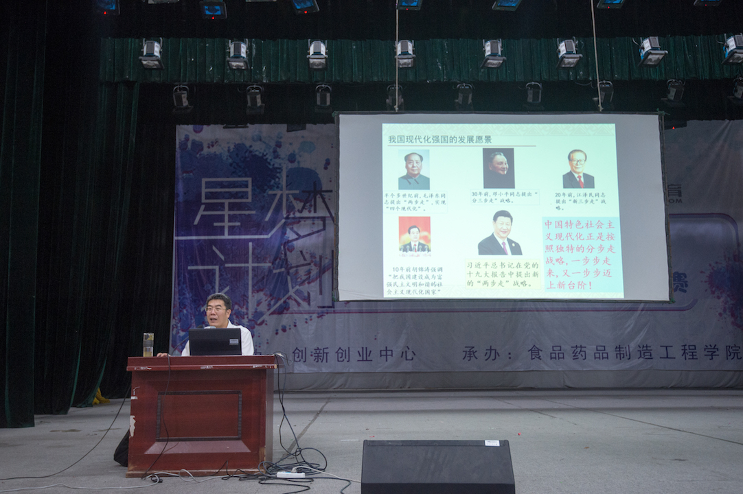 本网讯(马克思主义学院 杨立杰)为深入学习贯彻落实习近平总书记在北京大学师生座谈会和纪念马克思诞辰200周年大会上的重要讲话精神,按照省教育厅“学习新思想千万师生同上一堂课活动”要求,6月9日上午,贵州理工学院校长龙奋杰为贵州理工学院千余名学生做题为“开启建设中国特色社会主义现代化强国新征程”的专题讲座。