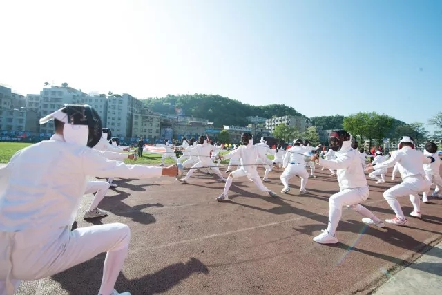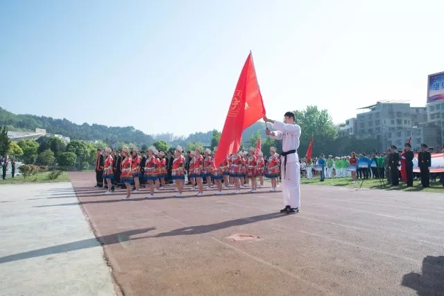 一抹青春橄榄绿,点亮学子报国志。国旗班步伐矫健昂首阔步走向主席台。啦啦操、跆拳道、击剑的精彩表演点燃了全体师生的热情。