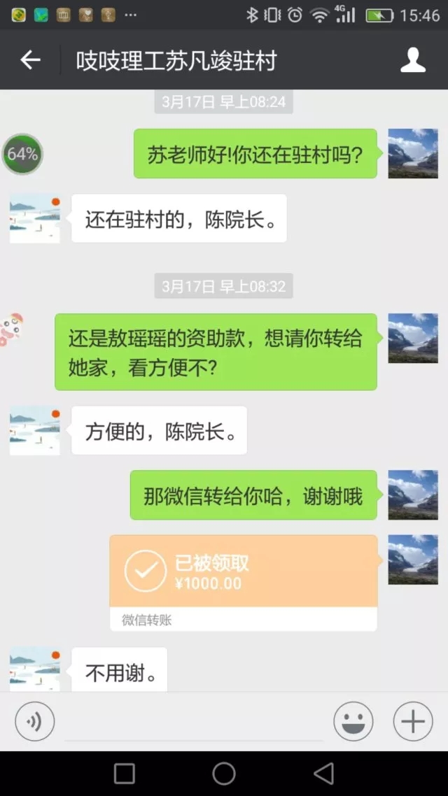 在人生成长关键时期得到的关爱和帮助,往往会对年轻人产生更大的积极的影响。转眼就要中考了,敖瑶瑶第一次面对学业生涯中的大事儿,紧张、不安以及面对不同的人生选择,不仅是她自己心中的焦虑,也让身处异乡的陈海虹教授忧心不已。“明天就像平常考试一样,正常发挥就可以了,相信自己。”“就按平时的作息时间,晚上不要复习了,放松!”……微信对话的字里行间中,处处渗透着陈海虹教授对敖瑶瑶的关心,如同一位母亲对女儿的关爱。