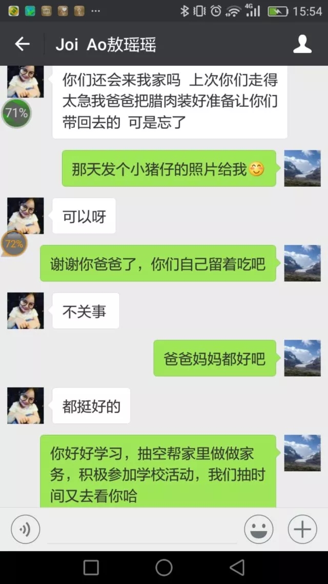 “看着妈妈饭也吃不下,心里特别不是滋味……”“你得坚强,不然妈妈更难受。”面对身体残疾的父母,面对青春期的困惑,陈海虹教授不仅通过日常的微信联系,鼓励敖瑶瑶要学会坚强、学会担当、努力成长,更是每年都亲自带上家人去看望敖瑶瑶一家,帮助他们解决家里的困难。“不要担心,只要你努力,我们就一直资助你完成所有学业。”在陈海虹教授的心中,早就把敖瑶瑶当做了自己的孩子一样。