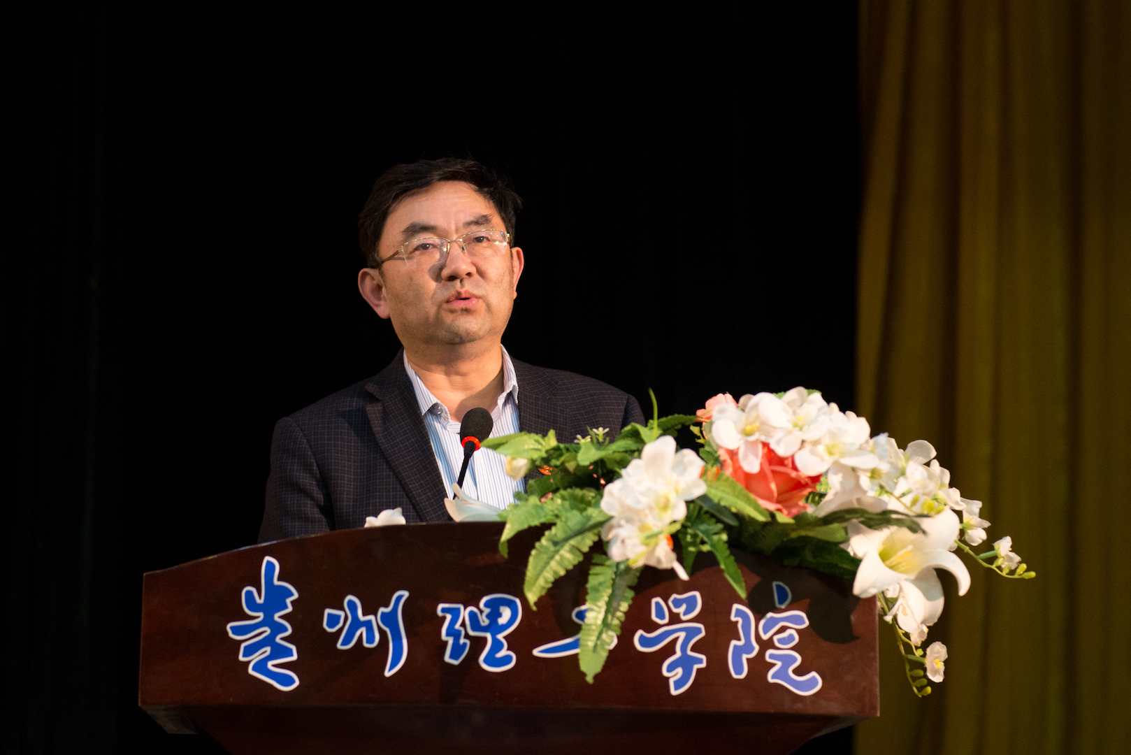 本网讯 10月30日19:00,贵州理工学院传达学习贯彻党的十九大精神报告会在逸夫大礼堂举行,十九大代表、共青团贵州省委书记涂妍走进理工校园宣讲十九大精神。报告会由贵州理工学院党委书记曾羽主持。团省委相关部室、各省属高校团学干部、贵州理工学院教职员工和青年学生1300余人参加。