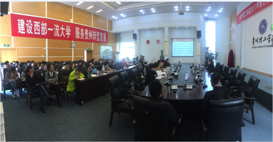 龙奋杰代表学校对新进教师表示了热烈的欢迎,并从筹建历史、建校后的发展、学校《章程》和学校“十三五”教育事业发展规划四方面作了校情教育专题讲座。他表示,在省委省政府关心重视下,在社会各界的大力支持下,我校经历建校初期的艰辛,在四年多的时间里取得了一系列成就,希望新进教师,不断提升自我,积极投身到学校的建设发展中,共同谱写贵州理工学院未来发展的美好篇章。