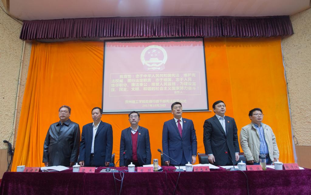 龙奋杰强调,一是要坚持以习近平新时代中国特色社会主义思想为指南引领学校的建设发展。要始终坚持社会主义的办学方向,始终坚持立德树人的根本任务,始终坚持服务人民的办学使命始终坚持改革创新的办学思路,始终坚持依法治校的办学理念;二是坚持以《贵州理工学院章程》为基础依法依规办学治校。各单位要高度重视学校《章程》学习,要以学习贯彻十九大精神为契机,做好《章程》组织学习,切实让广大教职员工,把思想和认识统一到学校发展理念上来,把智慧和力量凝聚到推动学校发展的各项工作上来,落实好学校确定的目标任务,用十九大精神统一思想、凝聚共识、推动发展;三是坚持以“十三五”教育事业发展规划为目标推进学校快速发展。要全面理解和明确“十三五”教育事业发展,按照任务分解方案和时间节点,全面落实“十三五”规划重点任务;四是坚持完善以制度建设为核心的治理体系推进学校健康发展。健全完善以《章程》为核心的校院二级治理体系、以学术系统为重心的学术与行政体系协调机制、以校院信息公开为载体的公开运行体系、以《贵州理工学院内部控制管理办法》为标准的内部控制体系。