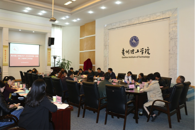 本网讯(教务处周新国)10月17日上午,贵州理工学院2017-2018学年第一学期第二次教学工作例会在喀斯特会议厅召开,副校长梁杰、校长助理张清江出席会议。各学院(教学部、中心)院长(部长、主任)、分管教学工作的副院长(副部长、副主任)、教学秘书,教务处、后勤处、教师工作处、评估中心、创新创业中心、网络中心负责人及教务处相关人员参加会议。