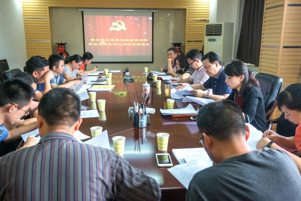 本网讯(宣传部 金敏)为深入推进学校思想政治工作,进一步动员广大师生扎实做好迎接全省2017年本科高校思想政治工作评估各项准备工作,2017年9月27日,贵州理工学院在行政楼第二会议室召开了迎接全省2017年本科高校思想政治工作评估推进会。校党委副书记张波出席并提出工作要求,党委办公室、学校办公室、宣传部、学工部、教师工作处、校团委、马克思主义学院等学校思想政治工作领导小组成员单位主要负责人参加会议。