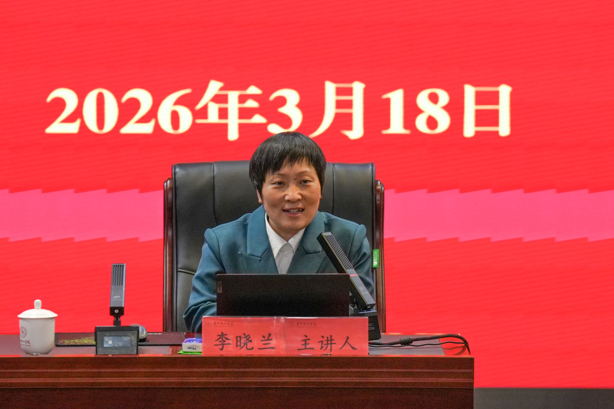 开班式结束后,省委党校马克思主义学院院长李晓兰受邀作专题辅导。她以《树立和践行正确政绩观》为主题,从科学内涵、逻辑基础、实践路径三个方面作了全面系统、深入浅出地解读。