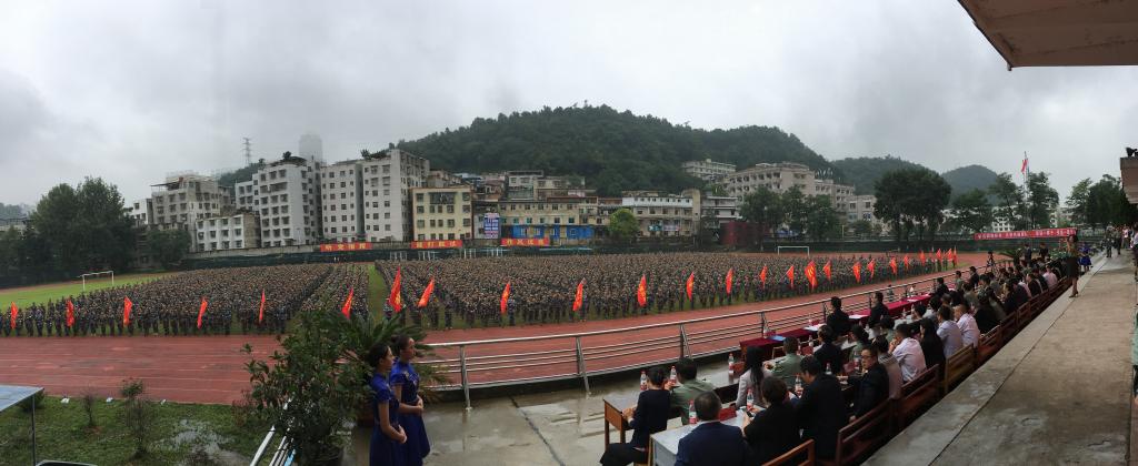 本网讯(宣传部 巫敏) 秋雨绵绵,尚未褪去夏季的炎热,却已迎来秋天收获的喜悦,栖凤山下的美丽校园又迎来了一届意气风发、朝气蓬勃的新同学。9月4日上午9时,贵州理工学院2017级新生开学典礼暨军训动员大会隆重举行,2835名新生在田径场上吹响了集结号,整齐的队列、飒爽的英姿、坚毅的眼神、充满朝气的面庞,秋风十里也不如这道靓丽的风景。