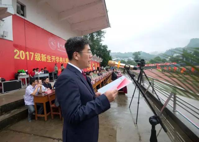 副校长、军训团团长梁杰宣读了《中共贵州理工学院委员会关于成立2017级学生军训团的通知》。