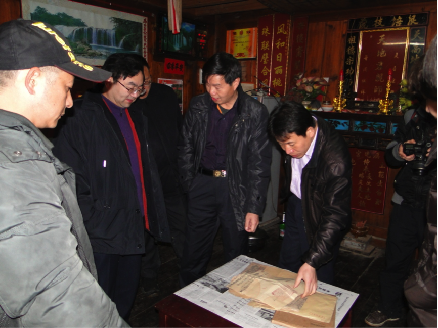 2012年2月23日,曾羽教授带领课题组到锦屏县石引村调查民间文书保存现状。