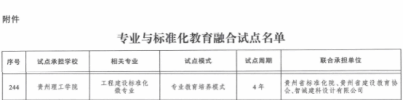 近日,市场监管总局与教育部联合印发《关于公布专业与标准化教育融合试点名单的通知》。学校申报的“工程建设标准化微专业”项目经严格评审成功入选。该项目是学校唯一入选的试点,也是贵州省工程建设领域标准化人才培养的重要实践平台,标志着我校在深化产教融合、创新复合型人才培养模式上取得重要突破。