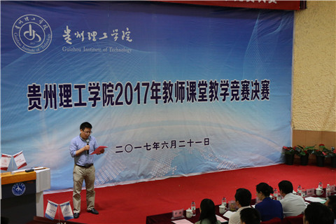 本网讯 (教务处 郝飞)2017年6月21下午,贵州理工学院2017年教师课堂教学竞赛决赛在逸夫学术报告厅举行。本次竞赛邀请了贵州大学副校长向淑文教授、贵州民族大学副校长王林教授、贵阳学院教务处处长刘燕教授担任评委。校长助理张清江出席活动,教务处、校工会、教师工作处等部门负责人和全校350多名师生全程观摩了比赛。