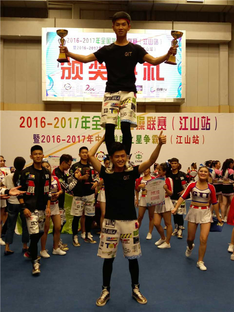 贵州理工学院“疯狂鼠”啦啦操代表队24名队员,作为贵州省唯一的一支参赛队在教练员林丽、苏雪姣、牟玥等几位老师的带领下,组建了3支参赛队伍,他们利用课余、周末、节假日等时间刻苦训练,积极备战。赛场上,凭借整齐划一的规范动作和积极向上的精神面貌,获得了青年丙组双人街舞自选动作、青年丙组集体街舞自选动作、青年丙组花球自选动作3个项目的冠军,由于表现出色,赛事组委会给我校颁发了派遣函,获得代表中国参加2017-2018年国际啦啦操系列赛事的资格。