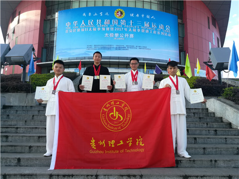 本网讯(体育教学部 侯生辉)6月3日至6日,第十三届全运会群众比赛暨2017年太极拳健康工程系列活动太极拳公开赛在都江堰市飞龙体育馆举行。我校此次共选拔派出四名运动员代表参赛。赛前经过长期集中训练,队员们克服身体疲劳,反复练习,对每个动作不断揣摩、精益求精。在比赛中,虽是与练习太极拳十余年的老队员同场竞技,但我校队员放松心态,稳定发挥,最终取得优异成绩,获传统杨氏太极拳项目二等奖和三等奖,在传统杨氏太极剑项目中获得一个一等奖和三个三等奖。